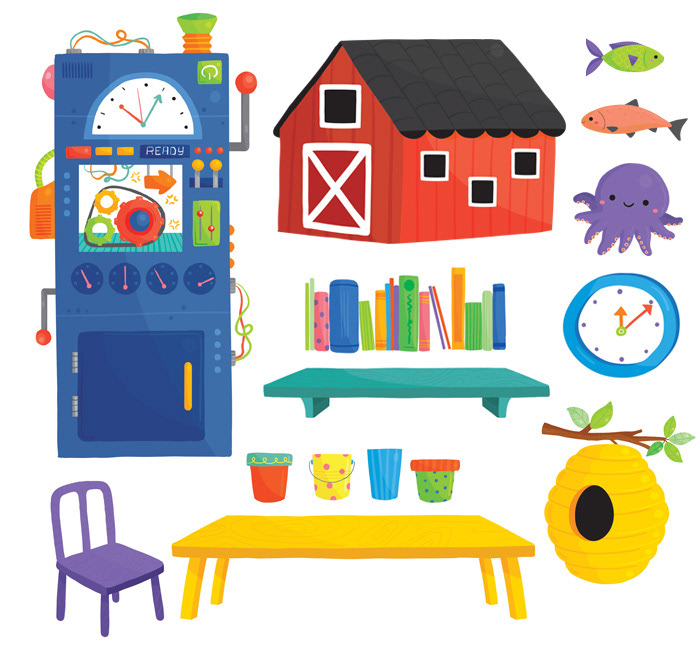 Several spot illustrations I made for Dorling Kindersley's Get Ready for School, a series of interactive books for pre-schoolers.