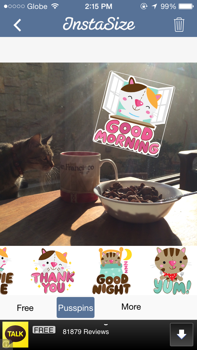 InstaSize, an app designed for Instagram, licensed my cat character illustrations as a 30-piece sticker pack contained within their app.